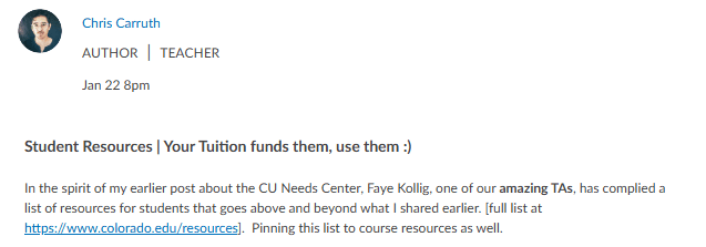 - Two (extremely fun and fulfilling) semesters of TA-ing for an introductory course, where I was responsible for grading/being available for 100 students. I also compiled a complete list of free campus and local resources for students.