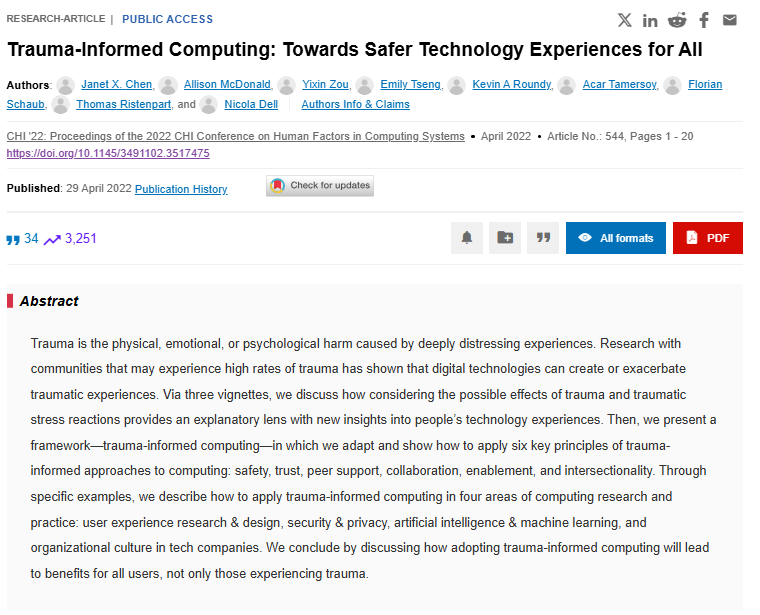- Discovered the paper that changed my life (Trauma-Informed Computing)